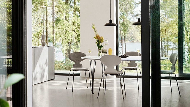 軽やかなフォルムが特徴のアントチェアや、ブランドを象徴するセブンチェア、スターレッグのスワンチェアなど、いずれも Fritz Hansen ならではの洗練されたデザインを備え、スーパーテーブルシリーズとの相性も抜群です。