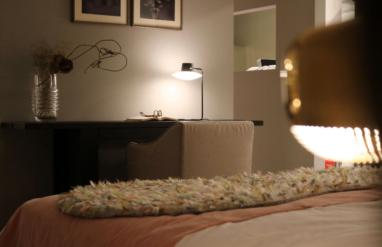 夜の灯りで大切なのは、眠りを妨げないこと。明るすぎると目が冴え、暗すぎると手元が見えづらくなってしまいます。寝室は、照明選びが特に難しい空間のひとつと言えるでしょう。