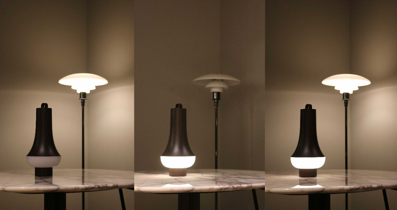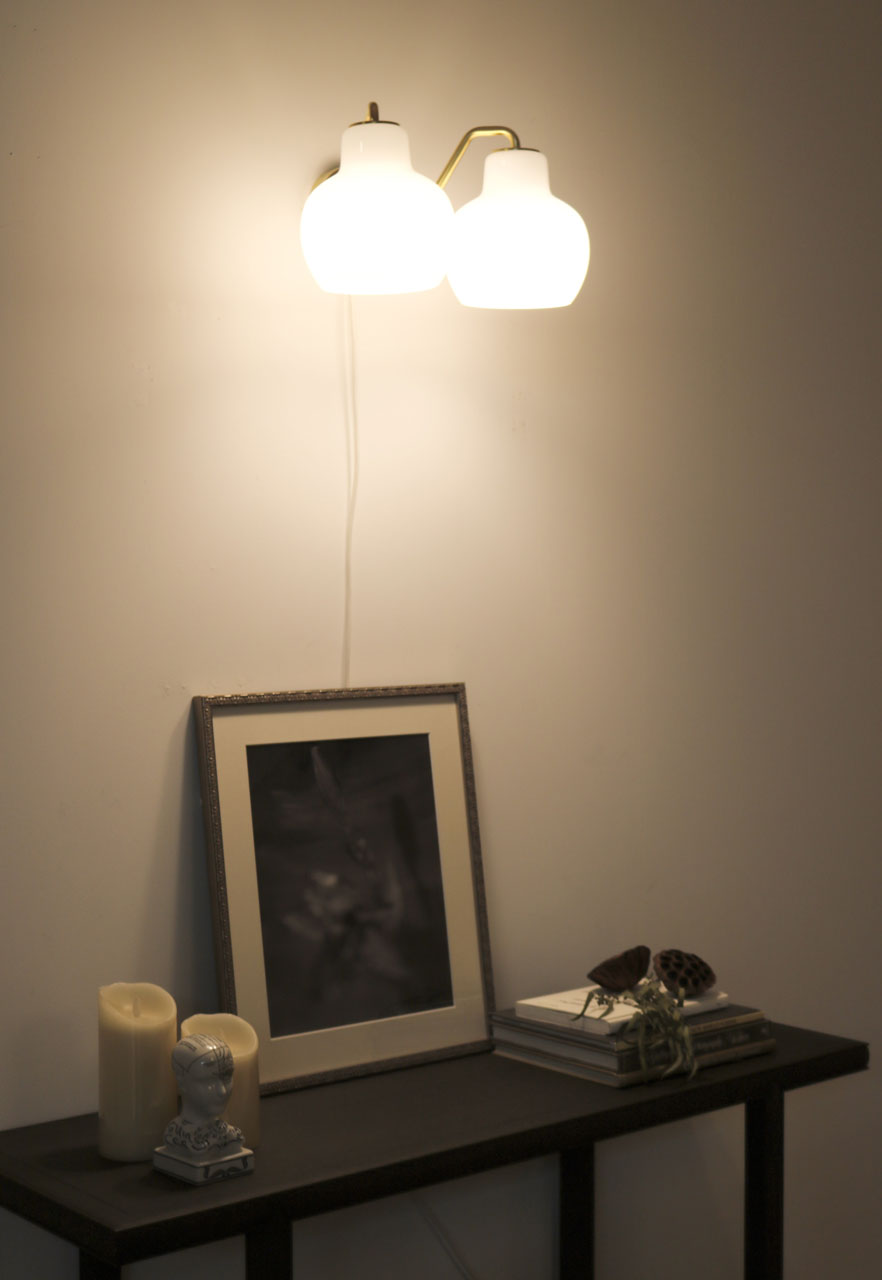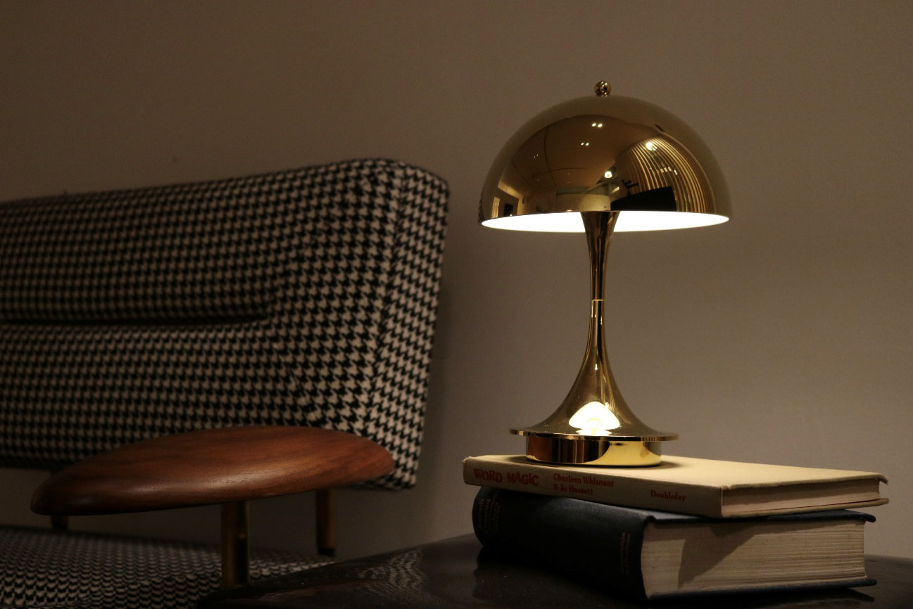 ころんとした丸いフォルムが印象的な「VL ステュディオ」は、フロアランプとしてもテーブルランプとしても活躍する多用途な照明。直接光を当てるのではなく、壁に向けて配置することで、反射した光が空間をふんわりと照らし、落ち着いた雰囲気を演出します。