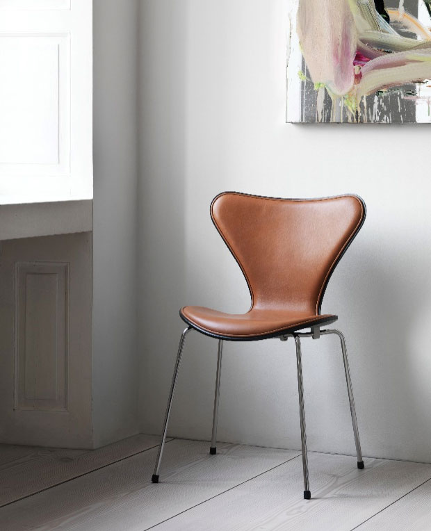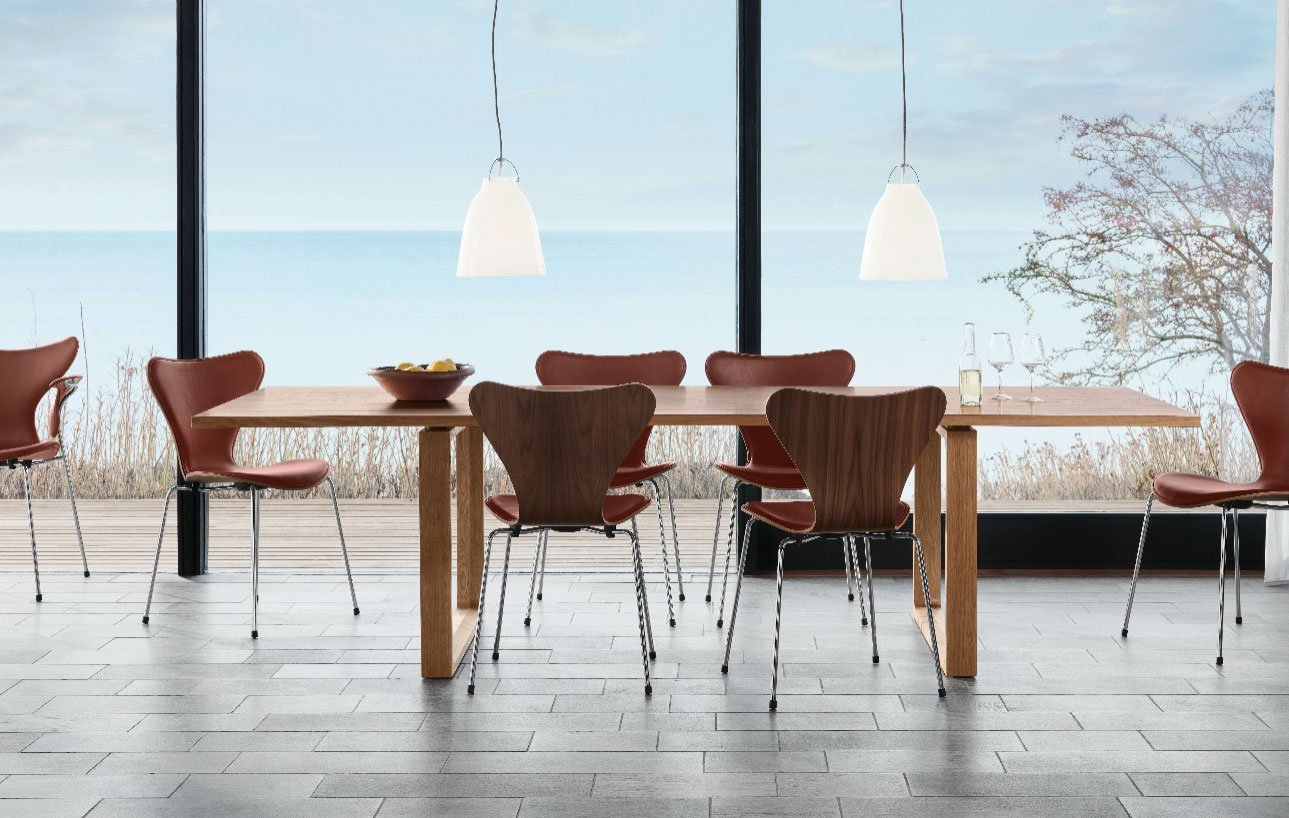アントチェアの進化形として誕生したセブンチェアは、世界で最も売れたスタッキングチェアとも称される、北欧デザインを代表する名作です。