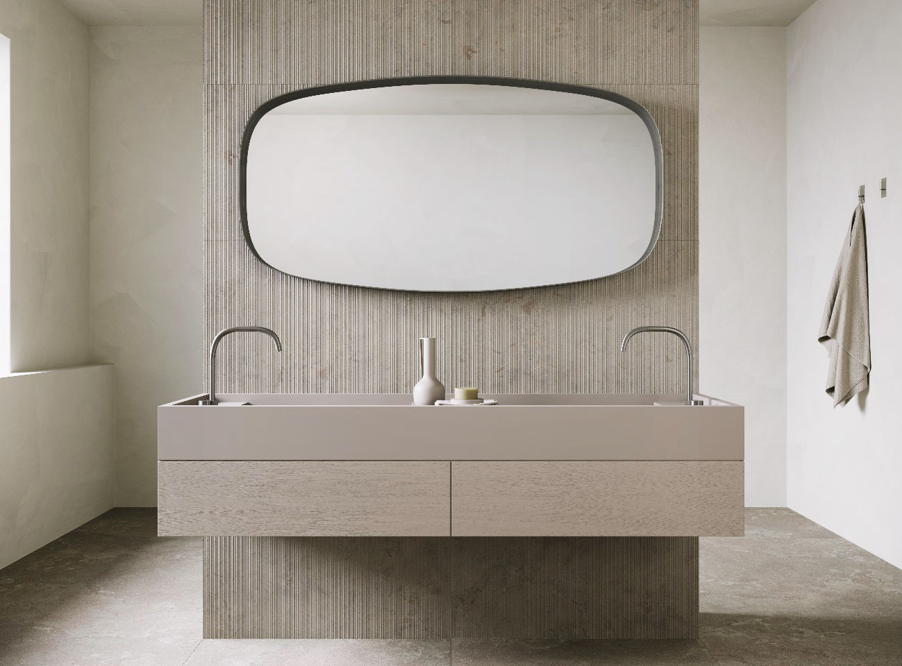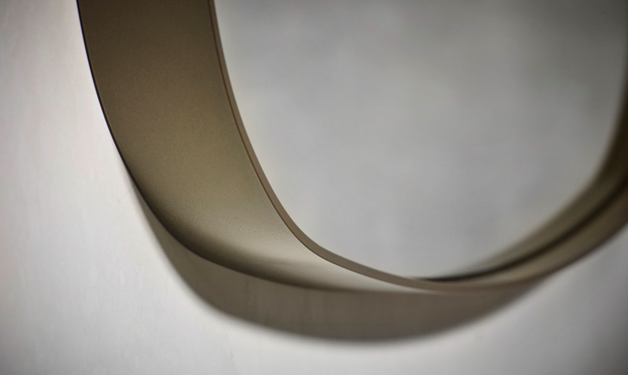 ミニマルで精緻な印象を与えるKEKKEミラー。わずか5mm幅の細くてフラットなストリップ状(帯状)のスチールフレームと、シリーズに共通するシャープで均整の取れた輪郭が融合しました。空間に静かな存在感と統一美をもたらします。