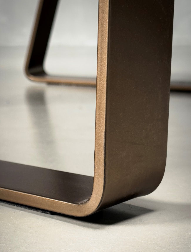 シャープなスチールフレームと厳選された天然素材の天板が調和する美しいデザイン。使い込むほどに味わいを増す素材感と計算されたバランスが、テーブルを囲むひとときを豊かで格別なものに彩ります。