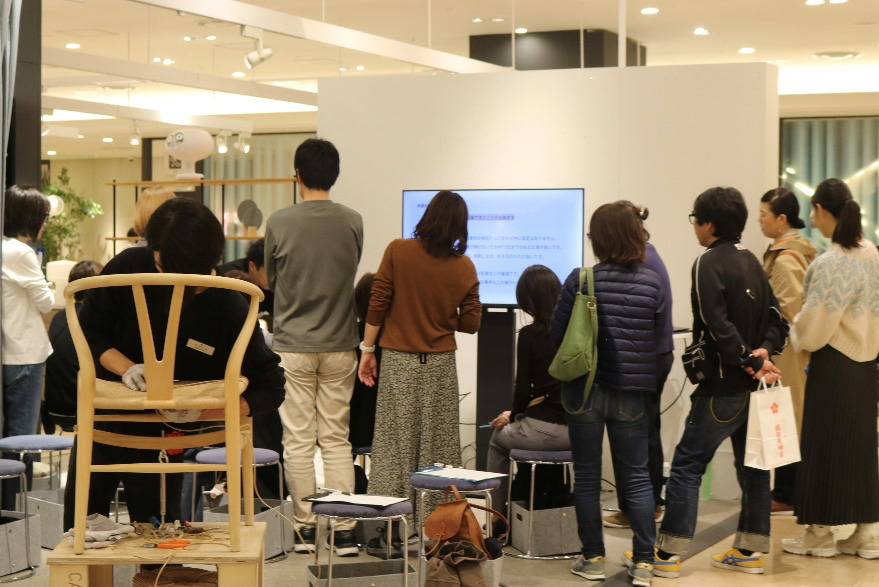 トークの合間に進捗を確認しながら、参加者の皆さまにも座面編み体験をしていただくなど、体験型のプログラムも大いに盛り上がりました。