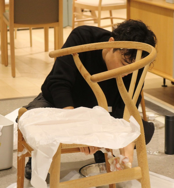 イベントでは、ソープ仕上げのメンテナンス方法も実演付きで紹介されました。固形石鹸やスポンジを用いた、日常生活に無理なく取り入れられるケア方法です。お気に入りの家具を美しく保ちながら長く使い続けるための知識は、参加者の皆さまにとって大きな収穫となったようです。