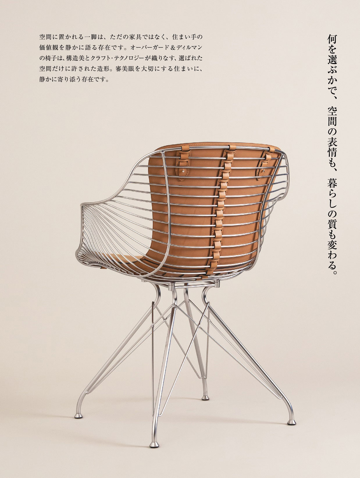 空間には、言葉を介さずとも美しさを伝える力があります。OVERGAARD & DYRMAN (以下O&D) の作品は、佇むだけで空間に意志を宿すような構造美。スチールとレザーを立体的に組み上げた姿は、もはや家具という枠を超え、建築の一部に近く、その造形は、機能や快適性の追求だけではありません。